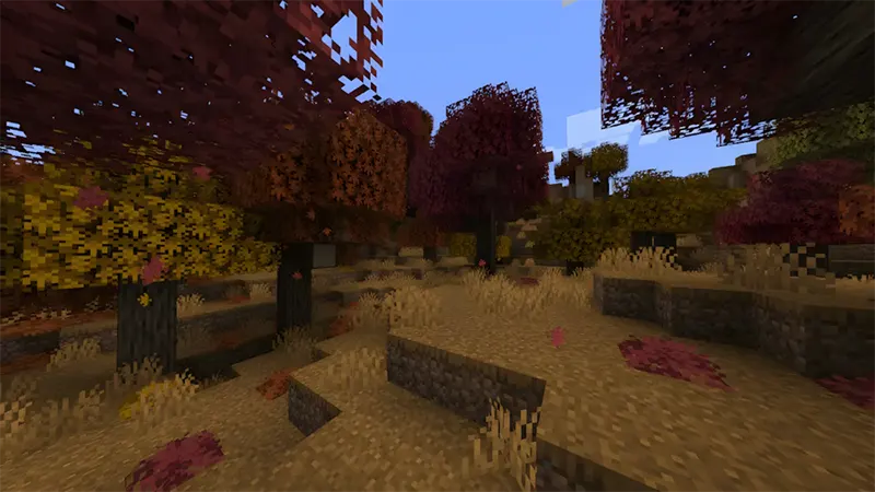 Thảm thực vật phong phú hơn giúp các quần xã sinh vật (biomes) trở nên dày đặc và tự nhiên hơn. Tất cả tán lá cây đều có hiệu ứng hạt rơi xuống, thêm chi tiết sống động cho môi trường. Các khối cát, cát đỏ và terracotta có thể phát ra âm thanh xung quanh khi được bao quanh bởi các khối tương tự.