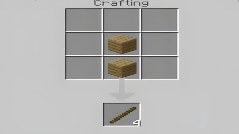 - Công thức: 1 que (ở ô giữa hàng dưới) + 2 ván gỗ (xếp chồng lên nhau ở 2 ô trên của cột giữa).